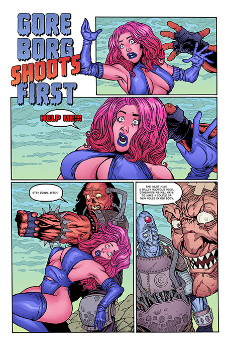 Featuring four fearsome tales of extreme brutality, Raw Draw introduces us to european splatter artist Oleg Green. Psychos, demons, robots, tits, dicks, and plenty of blood and guts combine laughs and revulsion!